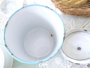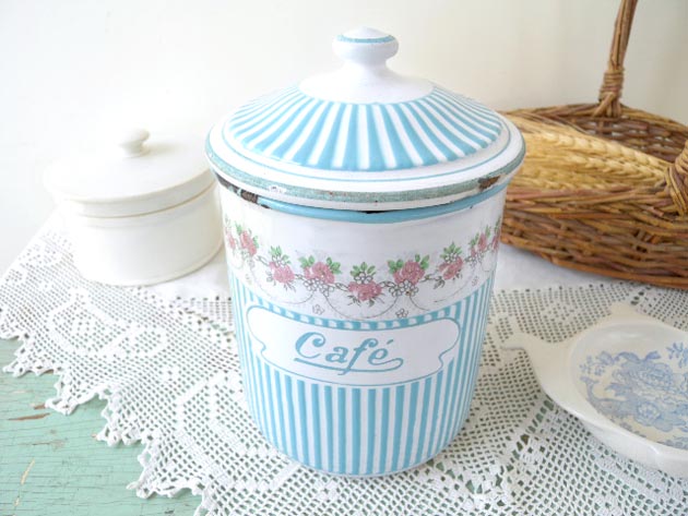フランスのBB社がおそらく1930年代に製造したローズガーランドパターンのホウロウ製のカフェキャ