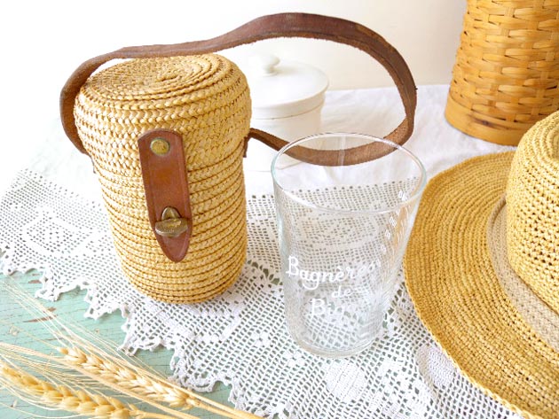スと真鍮の留め金と革のバンドが付いた草編みされた携帯バッグのセットです。飲泉とは医療用に温泉水