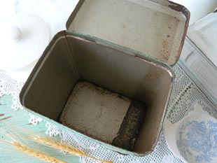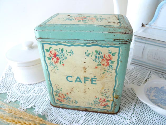 おおそらく1940年代にフランスで製造されたティン製のカフェ(コーヒービーンズ)が入っていたストレー