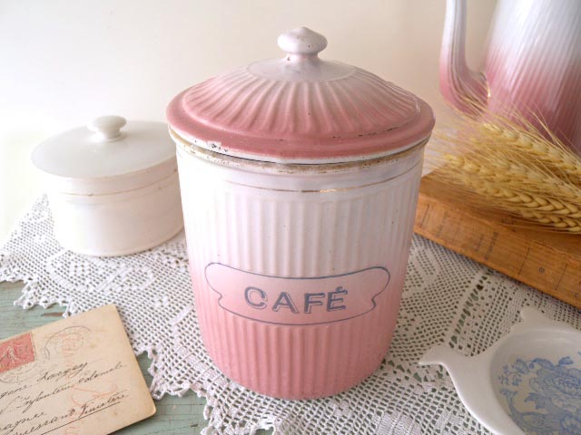 おそらく1930年代にフランスBB社が製造したホウロウ製のカフェ(コーヒー)キャニスターです。BB社はフ