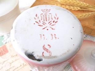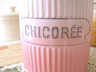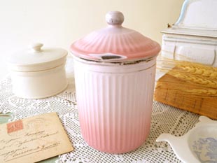 小さなチコリーを入れるためのキャニスターで白地にサーモンピンクのグラデーションカラーが美しく吹