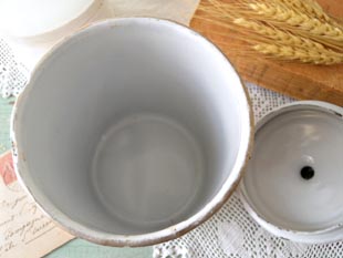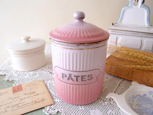 おそらく1930年代にフランスBB社が製造したホウロウ製のパッツ(パスタ)キャニスターです。BB社はフラ