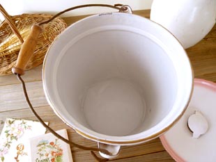 写真のようにバケツの下部にホウロウの欠けがあります。その他、多少のホウロウの欠けやキズやサビ