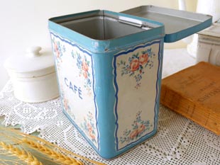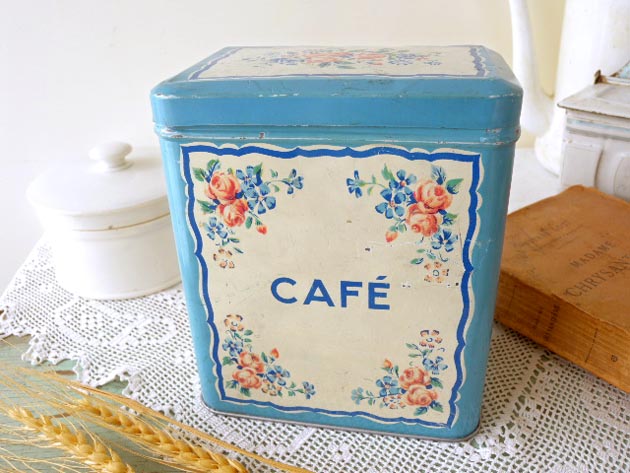 おそらく1940年代にフランスで製造されたティン製のカフェ(コーヒービーンズ)が入っていたストレージ