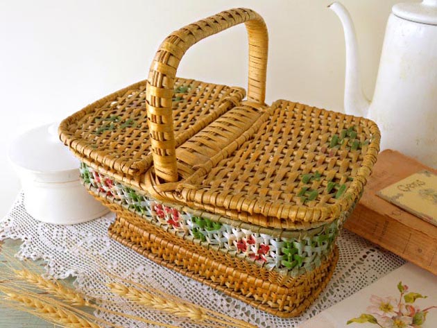 入れるのに使ったのでしょうね。とても丁寧に作られた凝ったデザインのウィッカーバスケットで、見て