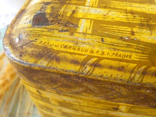 フタの側面には編み紐と取っ手には麦穂がデザインされていてとても凝った作りです。フランスのビス