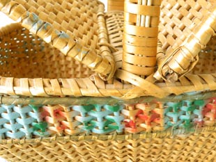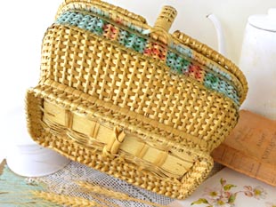 に大好きなお菓子を入れるのに使ったのでしょうね。とても丁寧に作られた凝ったデザインのウィッカー