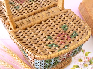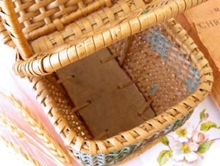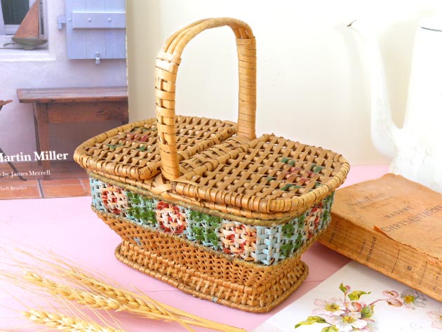 に大好きなお菓子を入れるのに使ったのでしょうね。とても丁寧に作られた凝ったデザインのウィッカー