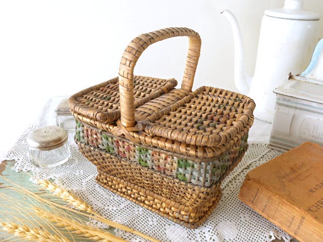 に大好きなお菓子を入れるのに使ったのでしょうね。とても丁寧に作られた凝ったデザインのウィッカー
