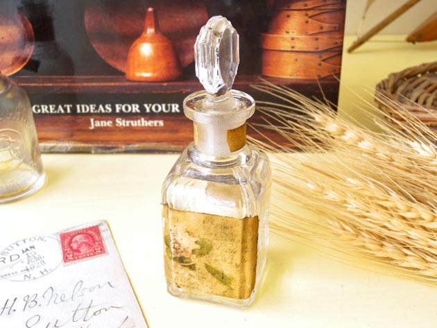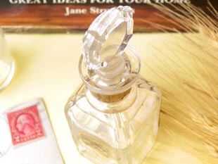 ルです。こちらはアールデコのデザインのガラス製のフタの付いたパフュームグラスボトルで、曲線主体