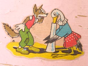 左右に移動して下段のボックスが開きます。左右のボックスにはフタがありフタにはイソップ物語の「き