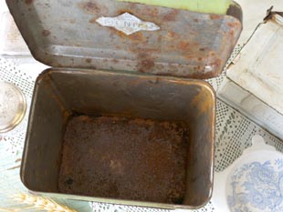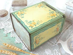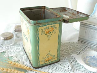 おそらく1940年代にフランスのムニエ社が製造したスクレが入っていたティン製のストレージ缶です。