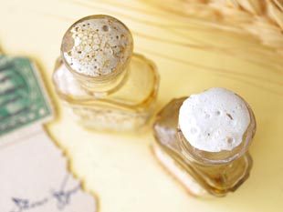 です。こちらはコルクの栓の付いた小さなパフュームボトルの2個セットで、ラベルにはお花のリースの