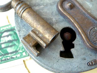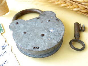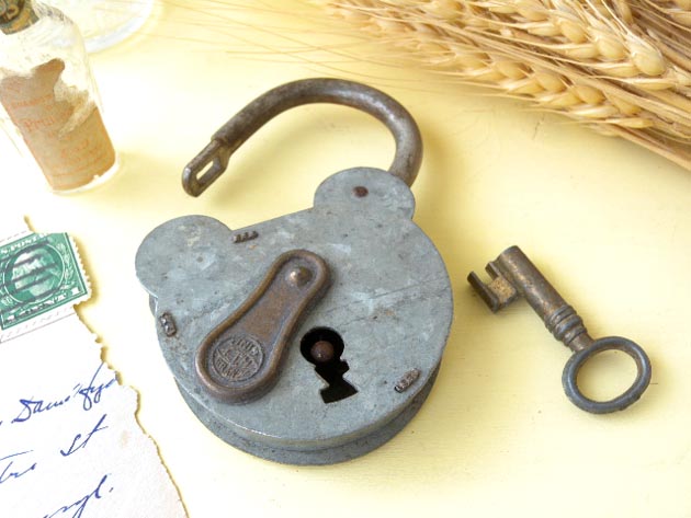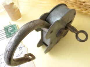 で財貨を守るのには重要なものだったのですね。こちらはキャストハート型のパドロックで真鍮製のキー
