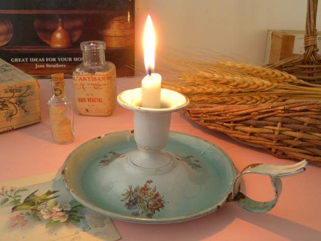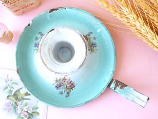 キャンドルホルダーです。ホウロウは18世紀にイギリスで鉄の錆び止めとして開発された鉄にガラス質の
