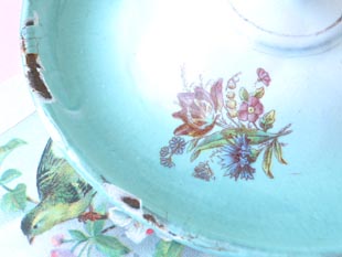 おそらく1900年代の初頭にフランスで製造されたホウロウ製のブルークレール&アイボリーフローラル
