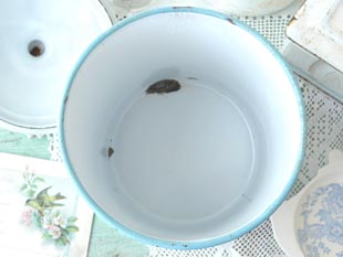 フタや本体の底面にホウロウの欠けがあります。多少のサビや汚れなどがありますが割りと状態が良くき
