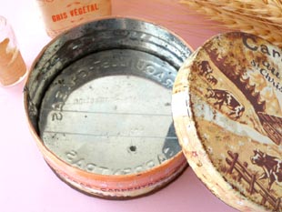 ストフカラメルズオレ」という商品名のミルクキャラメルが入っていたティン製のセントクリストフカラ