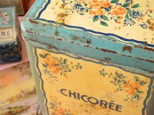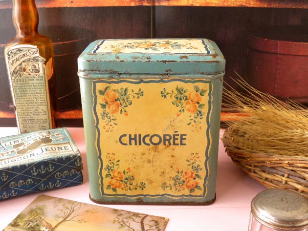 コーヒーが高価だった時代にチコリーをコーヒーの代用品として飲んだようです。こちらのストレージ缶