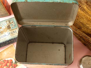おそらく1940年代にフランスで製造されたティン製のカフェ(コーヒービーンズ)が入っていたストレージ
