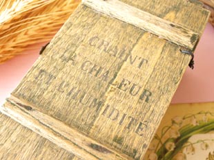 避けてください)と書いてありシャビーでとてもいい感じです。一世紀以上の使用でヒンジ部分が壊れたの