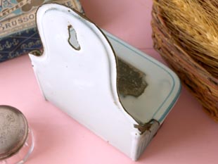 フック穴があるのでキッチンの壁に掛けて使われていたようですね。さすがにフレンチ製品はデザインク