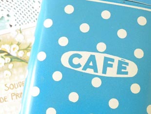 ■商品名・・・・・Polka Dot Cafe Tin ブルー&アイボリーポルカドットカフェ缶