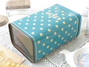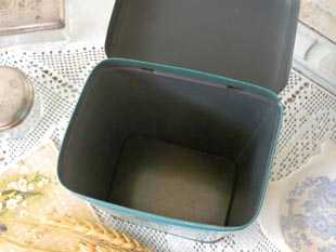 トカフェ缶です。こちらはほとんど使用されていない大変レアなブルー地にアイボリーのポルカドット模