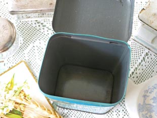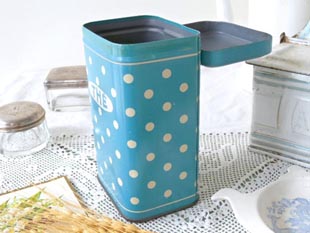 トティー缶です。こちらはほとんど使用されていない大変レアなブルー地にアイボリーのポルカドット模