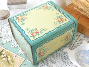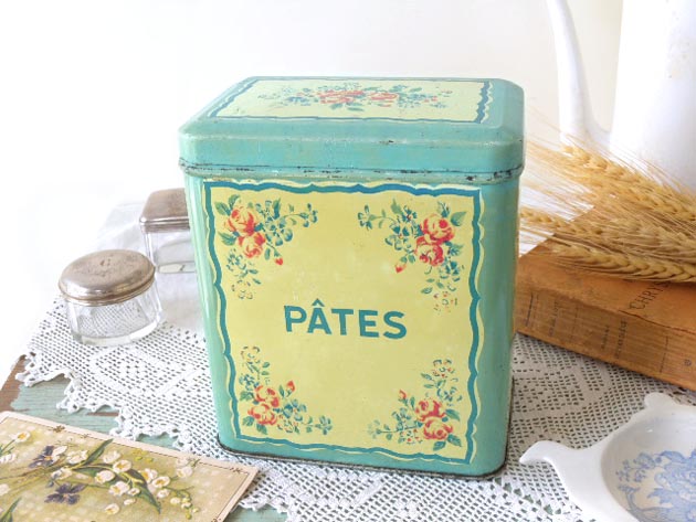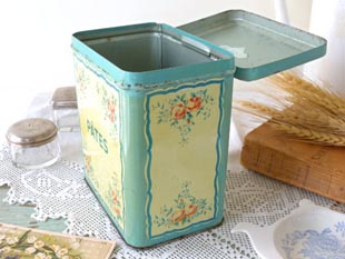 おそらく1940年代にフランスで製造されたティン製のパッツローズストレージ缶です。こちらはパッツ
