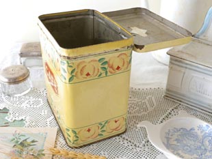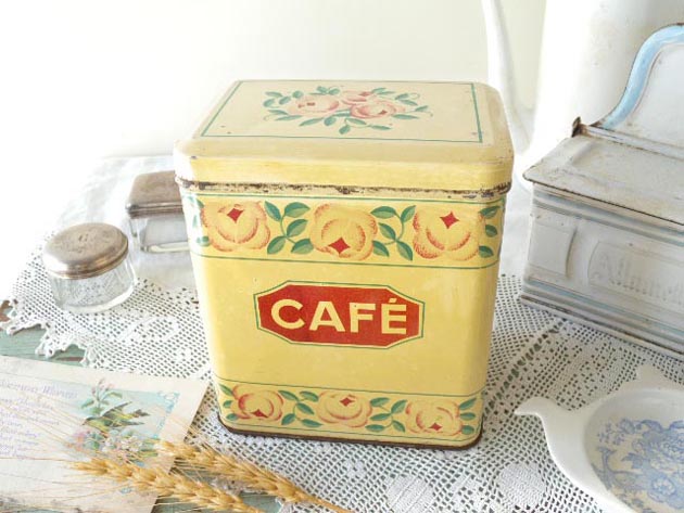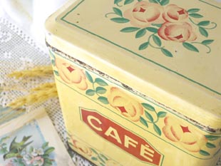 こちらはコーヒービーンズを入れるためのCafe(カフェ)ストレージ缶で、ベージュカラーにピンクのバラ