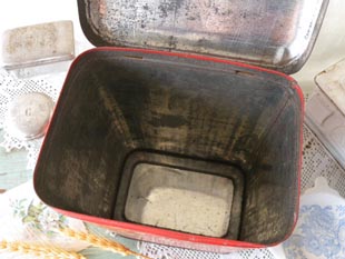 こちらは大変レアなレッド地にアイボリーのポルカドット模様のシュクレ缶で、アイボリーのオーバルの