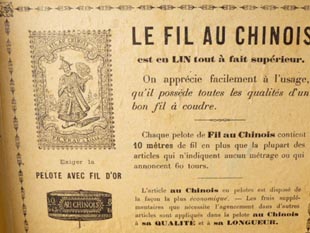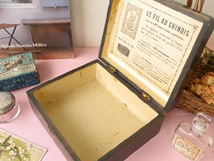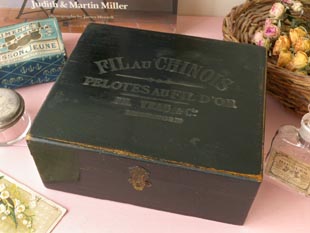 ルドカラーのスレッドボールが入っていたウッドボックスで、フタにはFil au Chinois(シノワスレッド)、