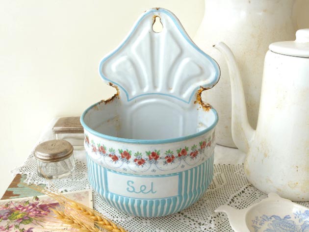 けてキッチンの小物入れやグリーンを飾っても素敵で工夫次第でいろいろと楽しく使えそうなホウロウア