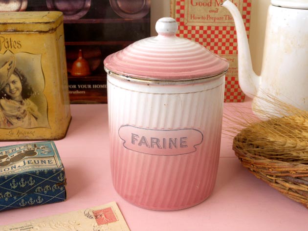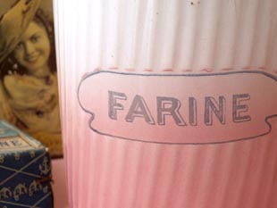 ちらは6個セットのうちの二番目に大きいファリーヌ(小麦粉)を入れるためのキャニスターで、白地にサー