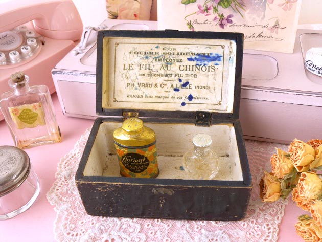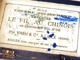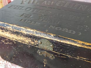 ドカラーのスレッドボールが入っていたウッドボックスで、フタにはFil au Chinois(シノワスレッド)、