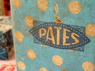 スクパターンとアイフォルムの中にフッシュアイで見たようなロゴでPates(パッツ/パスタ)と書かれた凝っ