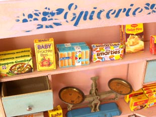 リーシェルフセットで、本体の上部のサインボードにはEpicerie(エピスリー/食料品)のロゴとお花がステ