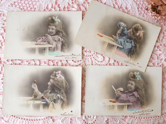 おそらく1900年から1910年代にフランスで製造されたプティットフィーユポスタルカルト4枚セットです。