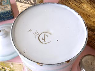 製造時のホウロウの釉薬の下に書かれたもので後から書かれたものではありません。さすがにフランスの