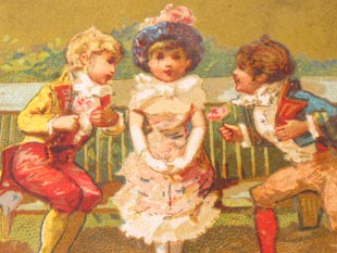 です。こちらは大変レアなゴールドの空の背景に可愛いプティマドモアゼルとジャンティオム(紳士)の楽し