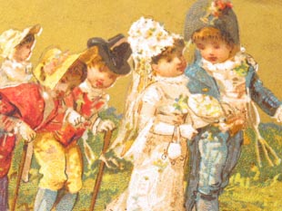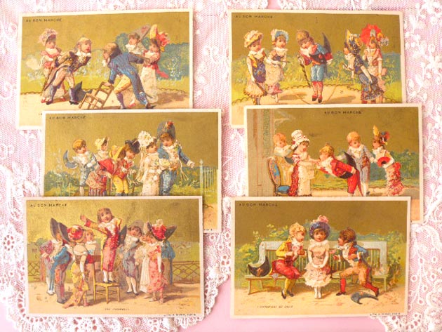 く1900年代に広告宣伝用に制作した厚紙製のプティマドモアゼル&ジャンティオムクロモ6アンサンブル