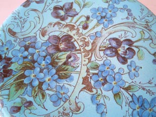紫のわすれな草と青いエボルブルス(アメリカンブルー)のお花のデコールイラストが描かれていてエレガ