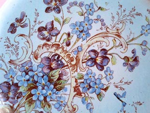 は紫のわすれな草と青いエボルブルス(アメリカンブルー)のお花のデコールイラストが描かれていてエレ