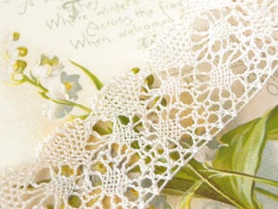 のままリボンとして使ったりブラウスの袖口やコットンバッグの飾り付けやテーブルリネンやピローケー