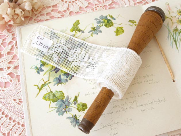 いいですね。おそらく手芸店で測り売りされていたレースのようですが、このままリボンとして使ったり