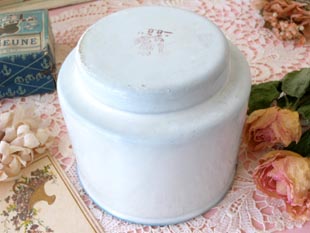 用するベニュワールプードルサボン(バスパウダーソープ)を入れるためのポットで、ブルーのトリムの付