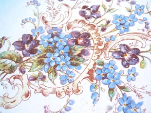 本体には紫色のミオゾティス(わすれな草)と青いエボルブルス(アメリカンブルー)のブーケのデコールイラ