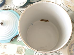 フタや本体にホウロウの欠けがあります。多少のサビや汚れなどがありますが割りと状態が良くきれい