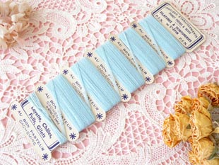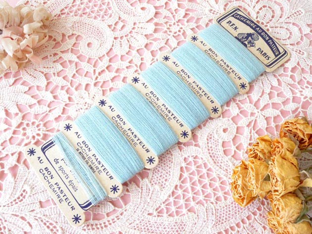 ネ(ウール)製のペールブルーライネフィル&カルトです。こちらはカルトに六つに分けて巻かれたペールブ
